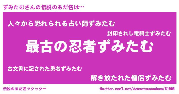 | ヒーロー風カッコイイあだ名 | 『ウルトラずみたむマン』『幻影騎士ズミ』 |