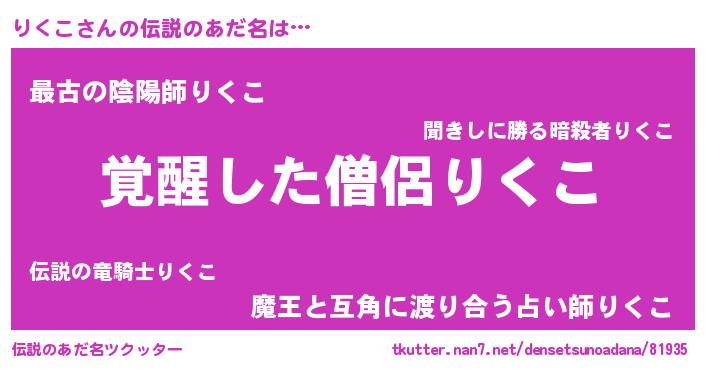 | ヒーロー風カッコイイあだ名 | 『炎刃騎士リク』『ウルトラりくこマン』 |