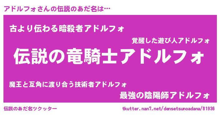 | 女子向けラノベタイトル風あだ名 | 『アドルフォなんてお断りですっ。』 |