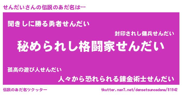 | ヒーロー風カッコイイあだ名 | 『仮面センダー』『ウルトラせんだいマン』 |