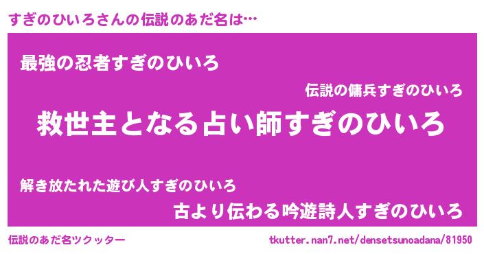 | ヒーロー風カッコイイあだ名 | 『慈愛の使者すぎのひいろ』 |