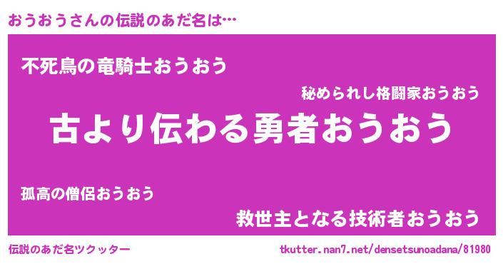 | ヒーロー風カッコイイあだ名 | 『仮面オウダー』『ネオオウオウ』 |
