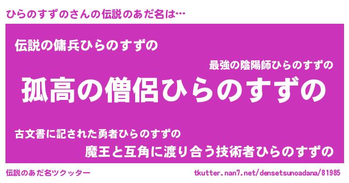 | 意味不明あだ名 | 『自称ひらのすずの』 |
