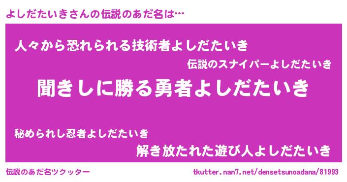 | 意味不明あだ名 | 『永久保存よしだたいき』 |