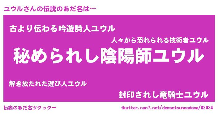 | ファンタジー風あだ名 | 『ヴァルユウーナ』『ユリユウヴァット』 |