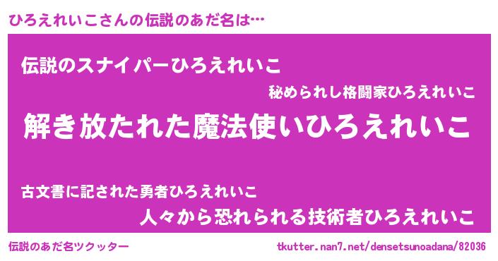 | 男性向けラノベタイトル風あだ名 | 『ひろえれいこの嫁は女の子じゃないと思った?』 |