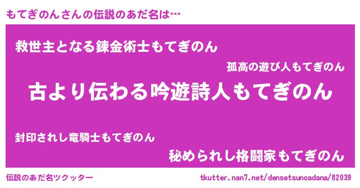 | 意味不明あだ名 | 『永久保存もてぎのん』 |