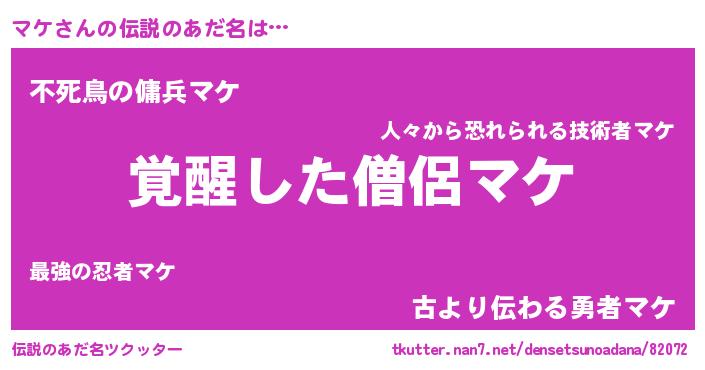 | ヒーロー風カッコイイあだ名 | 『天弓騎士マケ』『スーパーマケ』 |