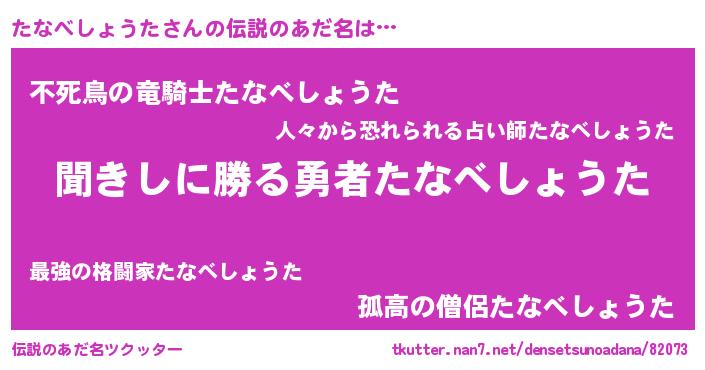 | 男性向けラノベタイトル風あだ名 | 『たなべしょうたという概念が存在しない退屈な世界 』 |