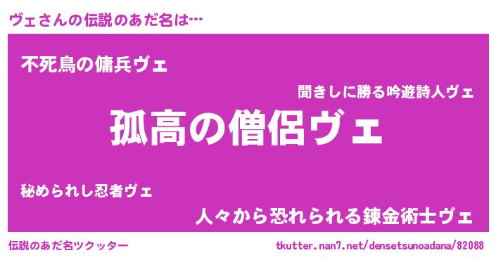 | ヒーロー風カッコイイあだ名 | 『仮面ヴェダー』『銀牙騎士ヴェ』 |