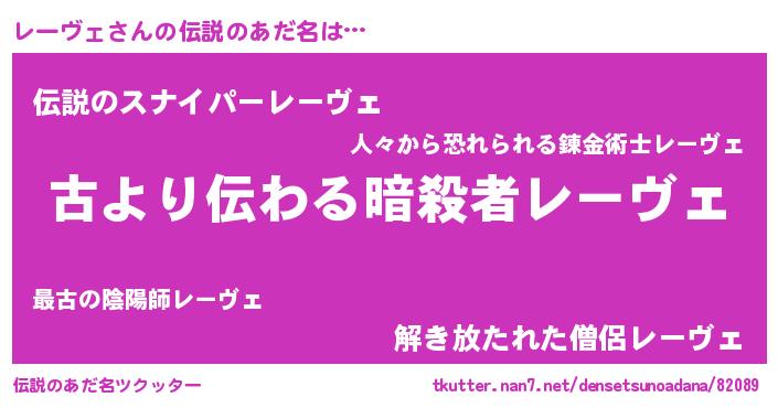 | 意味不明あだ名 | 『住所不定無職レーヴェ(43歳)』 |