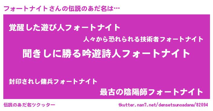 | ヒーロー風カッコイイあだ名 | 『ネオフォートナイト』『銀牙騎士フォ』 |