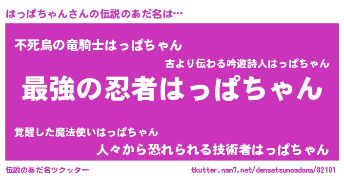 | ヒーロー風カッコイイあだ名 | 『ウルトラはっぱちゃんマン』 |
