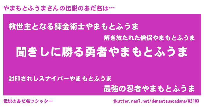 | 胡散臭い通販商品みたいなあだ名 | 『絶対に幸福をもたらす水素水…その名も「やまもとふうま」』 |