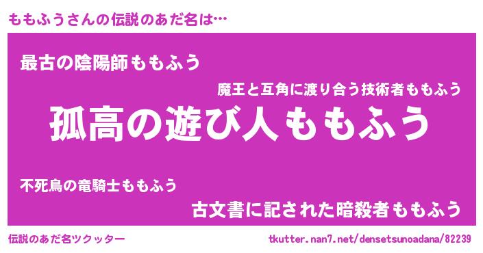 | 意味不明あだ名 | 『自称ももふう』『しいたけ科ももふう属』 |