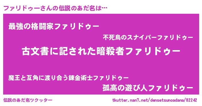 | ファンタジー風あだ名 | 『ファディッシュ』『ヴァルファーナ』 |