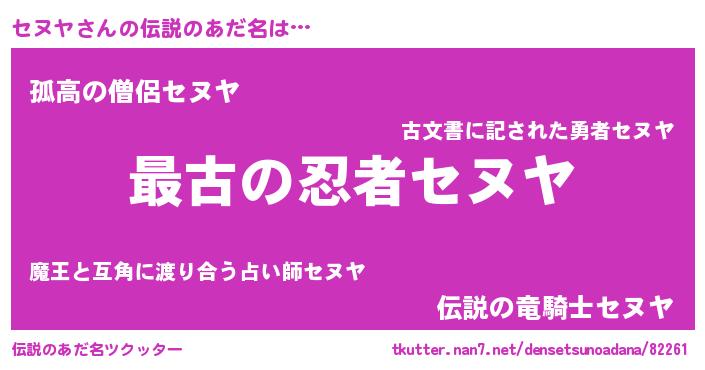 | ヒーロー風カッコイイあだ名 | 『ウルトラセヌヤマン』『暗黒騎士セヌ』 |