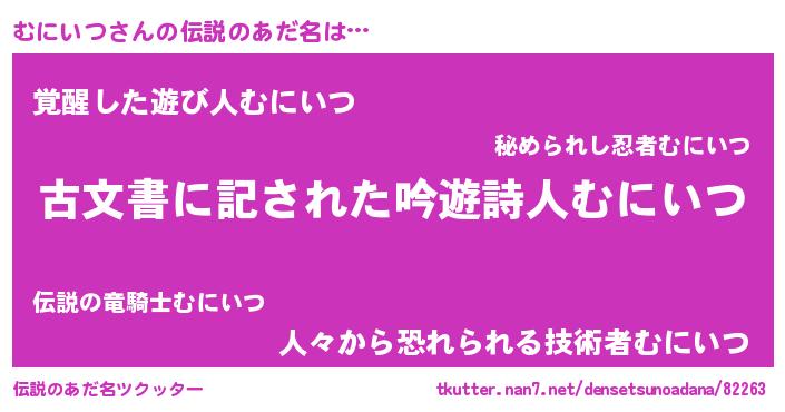 | 男性向けラノベタイトル風あだ名 | 『この素晴らしい世界にむにいつを!』 |