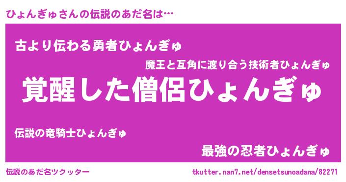 | ポケモン風あだ名 | 『ヒョゴンZ』『ヒヒョンギュ』 |
