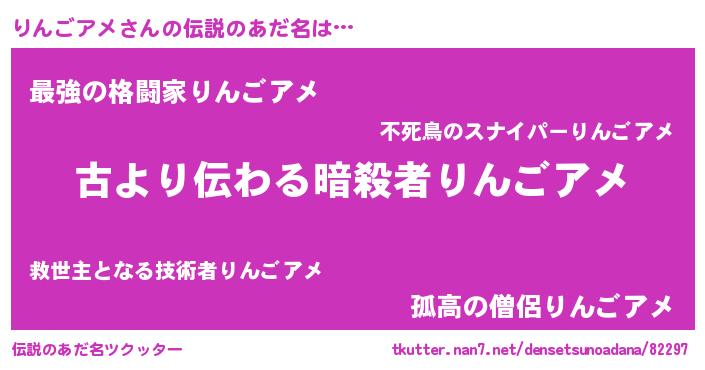 | 意味不明あだ名 | 『永久保存りんごアメ』『自称りんごアメ』 |