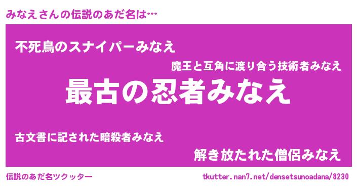 | ファンタジー風あだ名 | 『エターナルミナエー』『ミナフェル』 |