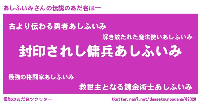 | ヒーロー風カッコイイあだ名 | 『最強戦士アシフイミ』『ネオアシフイミ』 |