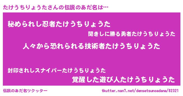 | 女子向けラノベタイトル風あだ名 | 『シンデレラたけうちりょうた家の靴箱館』 |