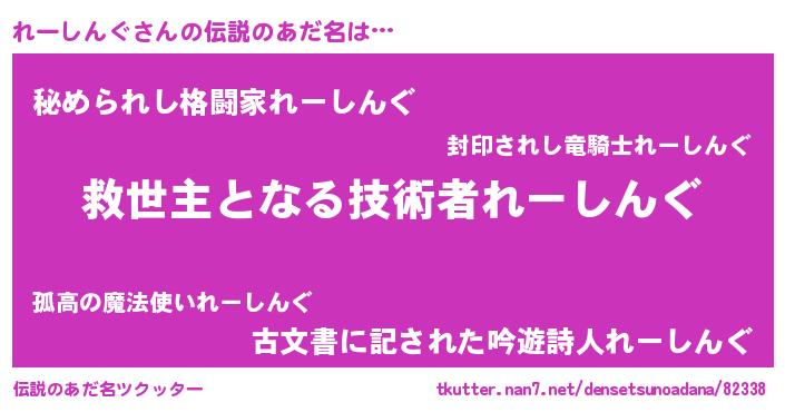 | 女子向けラノベタイトル風あだ名 | 『死神れーしんぐの再婚』 |