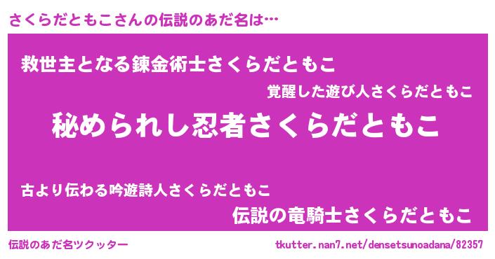 | 男性向けラノベタイトル風あだ名 | 『やはりさくらだともこの青春ラブコメはまちがっている 』 |