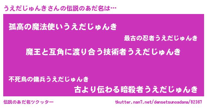 | 男性向けラノベタイトル風あだ名 | 『うえだじゅんきに滅ぼされるだけの簡単なお仕事です』 |