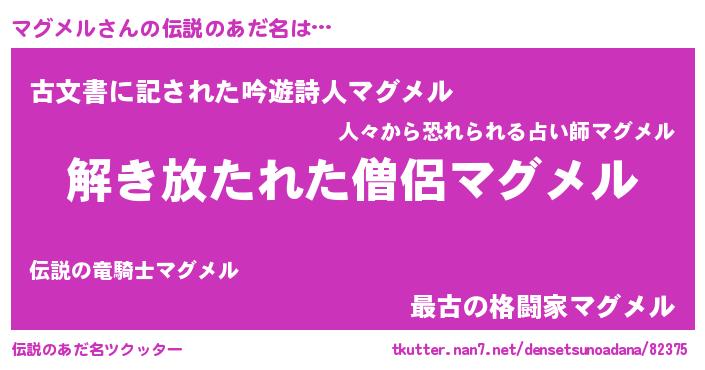 | ヘコむあだ名 | 『マグっぺ』『マグメル(小並感)』 |