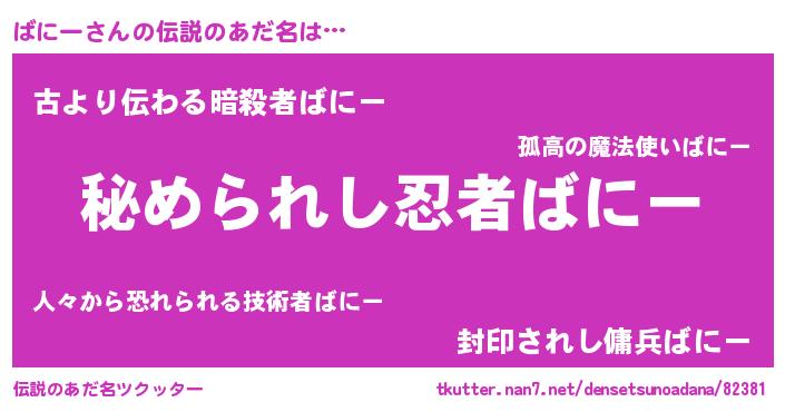 ヒーロー風カッコイイあだ名 | 『仮面バニダー』『サイバー戦士バニー』 |