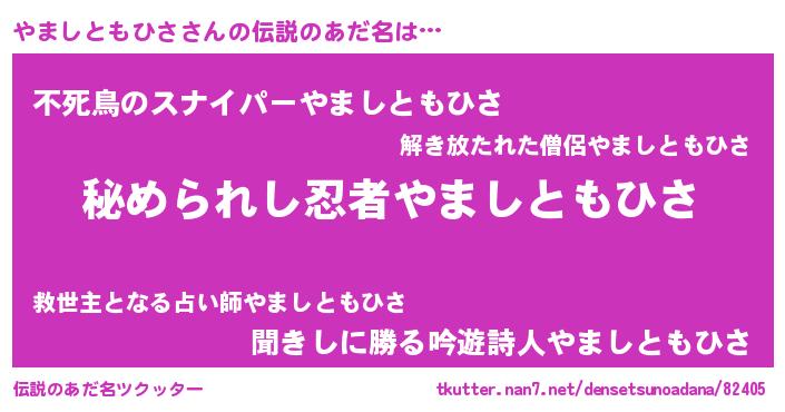 | ヒーロー風カッコイイあだ名 | 『ウルトラ戦士ヤマシトモヒサ』 |
