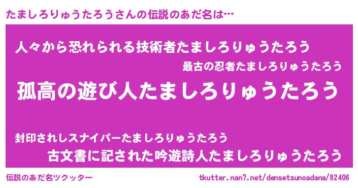 | 男性向けラノベタイトル風あだ名 | 『魔弾の王とたましろりゅうたろう』 |