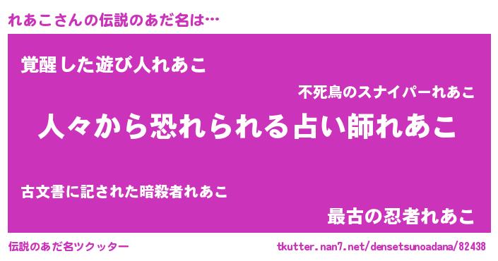 | 意味不明あだ名 | 『住所不定無職れあこ(65歳)』『自称れあこ』 |