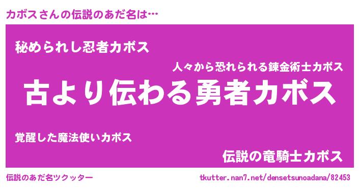 | 意味不明あだ名 | 『自称カボス』『永久保存カボス』 |