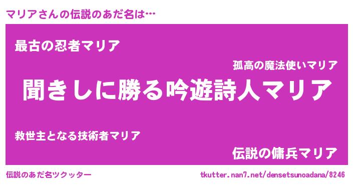 | 男性向けラノベタイトル風あだ名 | 『マリアスレイヤー』『緋弾のマリア』 |