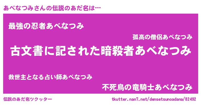 | ヘコむあだ名 | 『あべなつみ(笑)』『酢こんぶ』 |