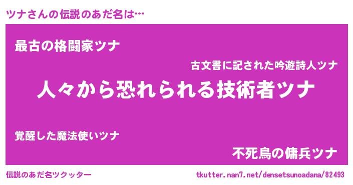 | ポケモン風あだ名 | 『ツックウザ』『ツナキング』 |