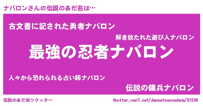 ヒーロー風カッコイイあだ名 | 『ウルトラナバロンマン』『仮面ナバダー』 |