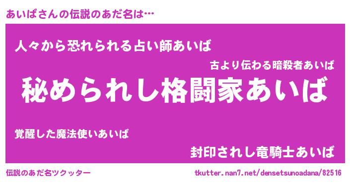 | 欧米人風あだ名 | 『アンジェラ・あいば』『ダニエルあいば』 |