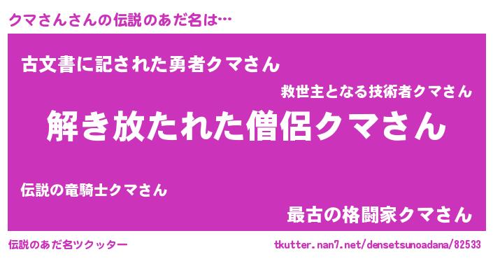| ポケモン風あだ名 | 『ヒクマサン』『クマゴンZ』 |