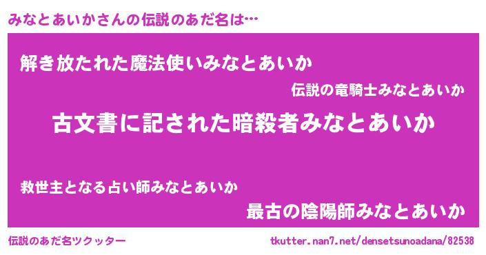 | 意味不明あだ名 | 『自称みなとあいか』 |