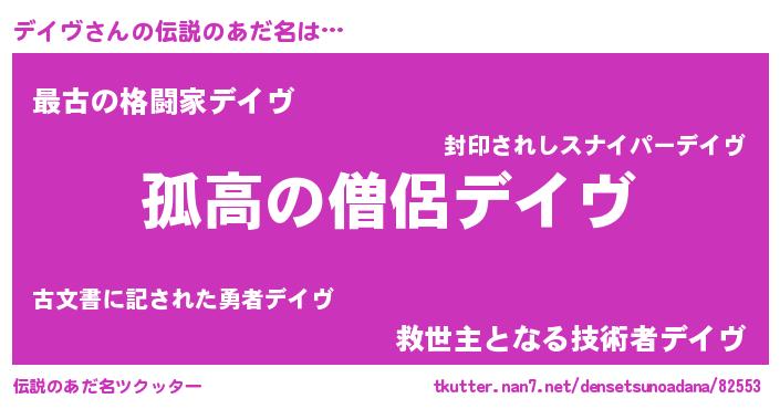 | 意味不明あだ名 | 『とにかく怪しいデイヴ』 |