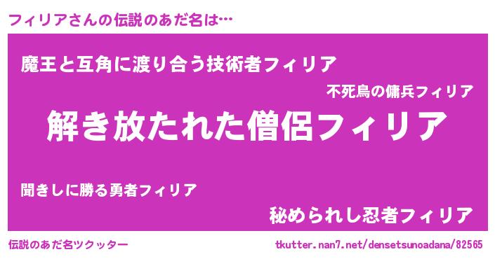 | 意味不明あだ名 | 『住所不定無職フィリア(59歳)』 |