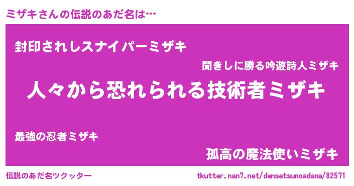 | ヘコむあだ名 | 『ミザにー』『ミザっぺ』『牛乳』 |
