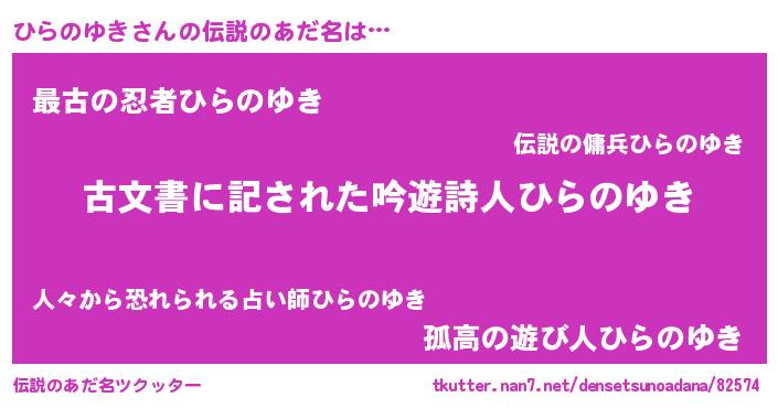 | ヒーロー風カッコイイあだ名 | 『ネオヒラノユキ』『魔戒騎士ヒラ』 |