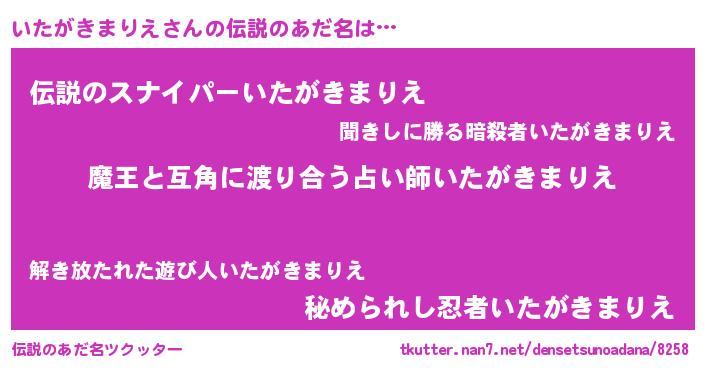| ヒーロー風カッコイイあだ名 | 『愛の使者いたがきまりえ』 |