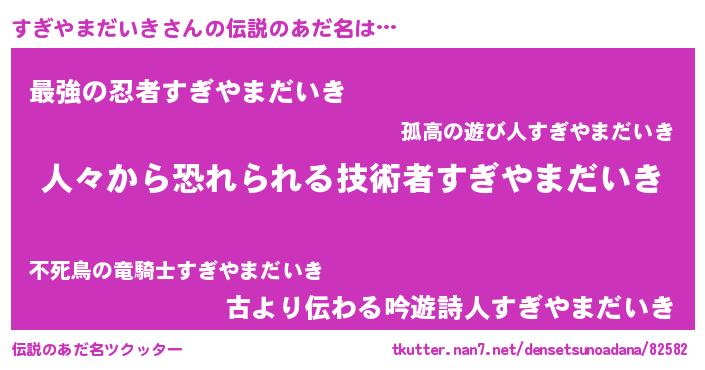 | ポケモン風あだ名 | 『スギキング』『スーギイ』 |