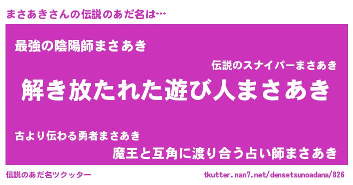 | ヒーロー風カッコイイあだ名 | 『仮面マサダー』『究極戦士マサアキ』 |